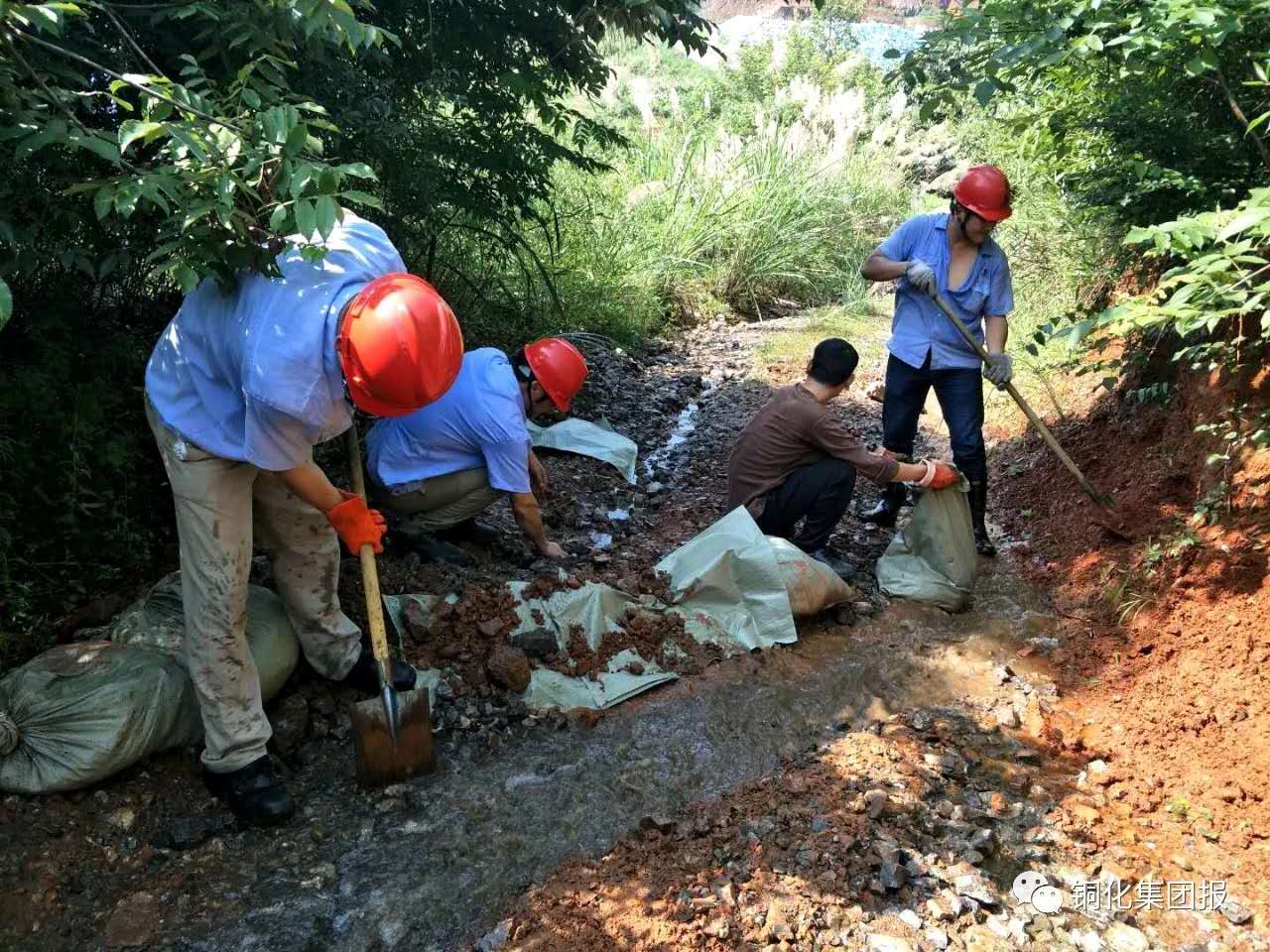 7月7日,大雨過后,新橋公司及時(shí)組織人員對(duì)工業(yè)場(chǎng)所和礦區(qū)道路淤泥、砂石、積水進(jìn)行清理,修整,恢復(fù)被雨水沖塌的部分廠區(qū)圍墻和防水壩。期間,該公司黨群工作部組織員工清理副井堆礦場(chǎng)道路兩邊的砂石;選鐵廠組織員工筑壩截水,以修復(fù)被大雨沖塌的圍墻;選礦廠組織員工清理防洪水溝內(nèi)的碎石,確保溝渠暢通。下圖為員工在裝土筑壩截水。喬欣 李霞 攝
