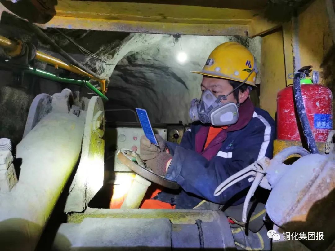 下圖:鏟運(yùn)機(jī)司機(jī)蔣繼能在作業(yè)前閱讀風(fēng)險(xiǎn)識別卡。